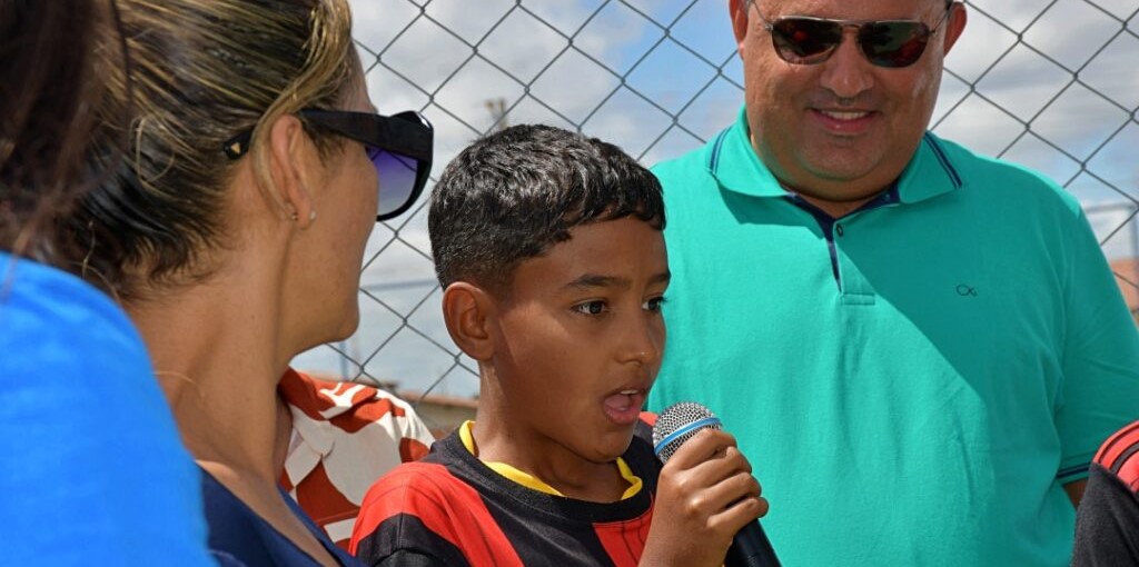 A criançada se fez presente no momento e o jovem Luan, falou que ficou muito feliz com a nova quadra.