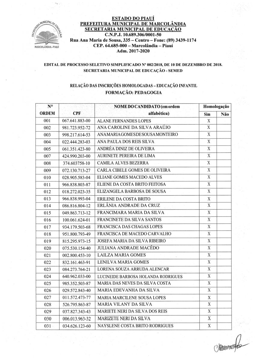 RELAÇÃO DOS ESCRITOS HOMOLOGADOS NO PROCESSO SIMPLIFICADO EDITAL EDUCAÇÃO.