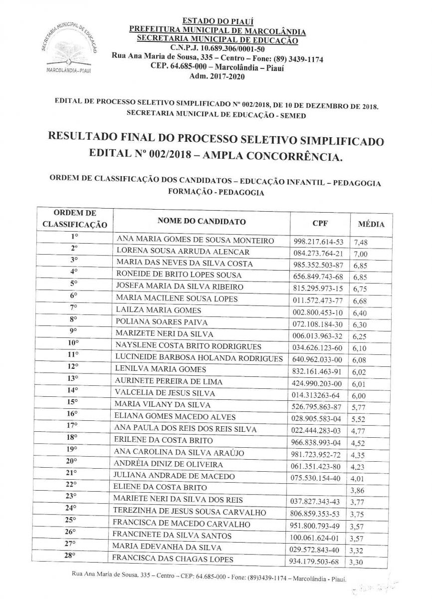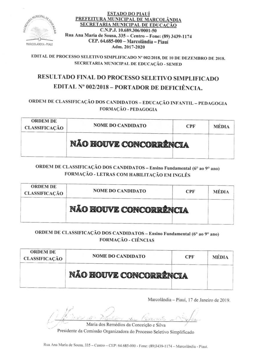 DECRETO DISPÕE SOBRE A HOMOLOGAÇÃO DO PROCESSO SELETIVO SIMPLIFIADO 002/2018